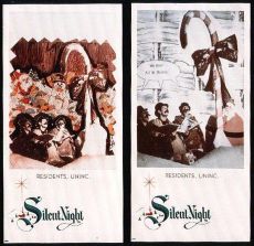 In 1973 The Residents recorded their debut work, Meet The Residents, the finale of which features two songs inspired by Christmas, Seasoned Greetings, and N-ER-GEE (Crisis Blues). In 1974, The Residents also sent out an art collage Christmas card, and a few years later, released the 'Beyond the Valley of a Day in the Life' sound collage, which features samples from The Beatles' third Christmas Record, particularly when The Beatles are decorating a tree. The following year The Residents released Santa Dog '78, establishing a pattern of re-recording 'Fire' to announce a stylistic shift in their work. The year after that, The Residents' released 'Dumbo The Clown Who Loved Christmas.'