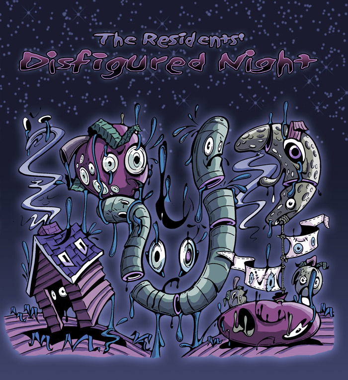 Also volunteering at the fund raiser was the house manager for the Fillmore in San Francisco. After seeing The Residents' performance, the promoter was so excited, he immediately invited the group to perform five shows at The Fillmore the following Halloween. Having never played this historic venue before, The Residents immediately accepted and began preparations. Soon another request came in, this time from the unlikely source of Marlboro cigarettes - in Germany. Searching for an event on which to focus their advertising at the Popkomm music trade show in Cologne, the tobacco giant suggested a short performance, 20-30 minutes in length, that could be video taped for television; it was to be performed 3 or 4 times with a changing audience. The small crowd was limited to people who won tickets in response to cigarette ads. (Leaving no opportunity for addiction unanswered, Marlboro also showered the audience with free smokes while waiting to take their turn as an audience member.) Aided by MTV producer and friend, John Payson, The Residents adapted a piece from the Adobe performance, transforming it into a 30 minute performance vehicle, Disfigured Night. The Residents performed Disfigured Night four times that evening; several months later, the piece was later broadcast on national television in Germany.