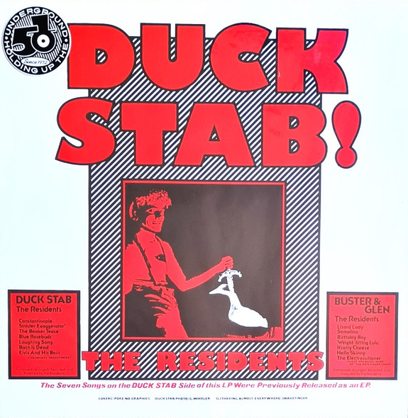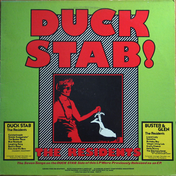 Duck Stab!/Buster & Glen (or simply Duck Stab!)[Note 1] is the fifth studio album by The Residents,[Note 2] released on November 30th 1978 by Ralph Records. It combines Duck Stab!, a seven-song EP the group had released earlier in the year, with a selection of seven additional tracks which the group had originally intended to issue as a follow-up EP titled Buster & Glen.